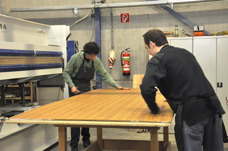 Plaatverlijming is een nauwkeurig proces. Om goed, schoon en snel plakwerk te kunnen leveren is veel ervaring nodig. Eigenaar en opgeleid meubelmaker Jeroen: "HEBA Plaatverlijming heeft snelheid als handelsmerk."
